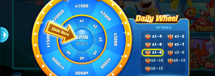 Để khuyến khích người chơi đăng nhập vào game mỗi ngày, ngoài việc tặng thưởng cho lần đăng nhập đầu tiên, 2Cá còn tặng cho người chơi 1 lượt quay miễn phí và phần thưởng cũng sẽ là vàng. Do đó, để nhận vàng free thì bạn đừng bỏ lỡ tính năng vô cùng hấp dẫn này nhé.